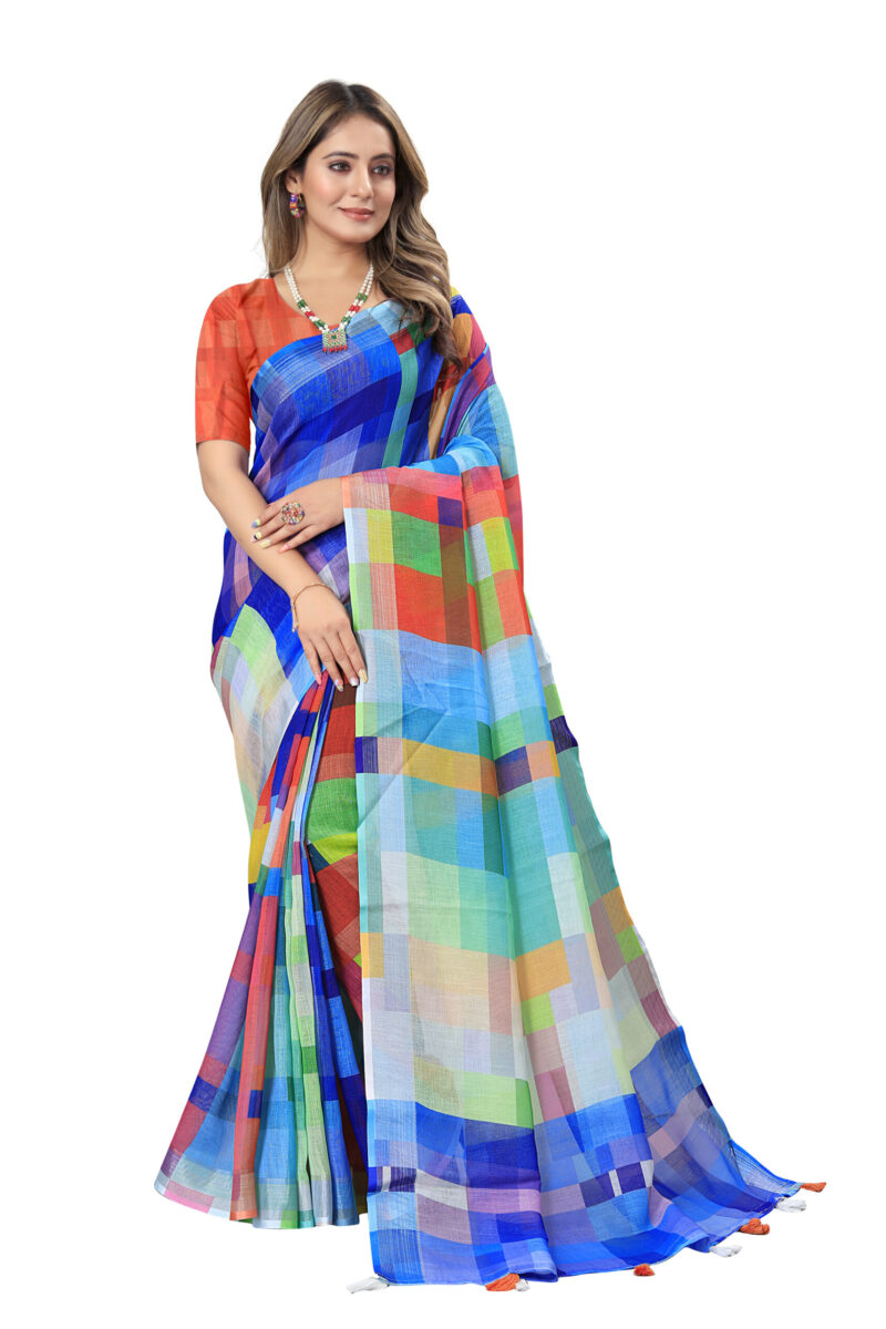 RAINBOW ELEGANCE LINEN COTTON SAREE