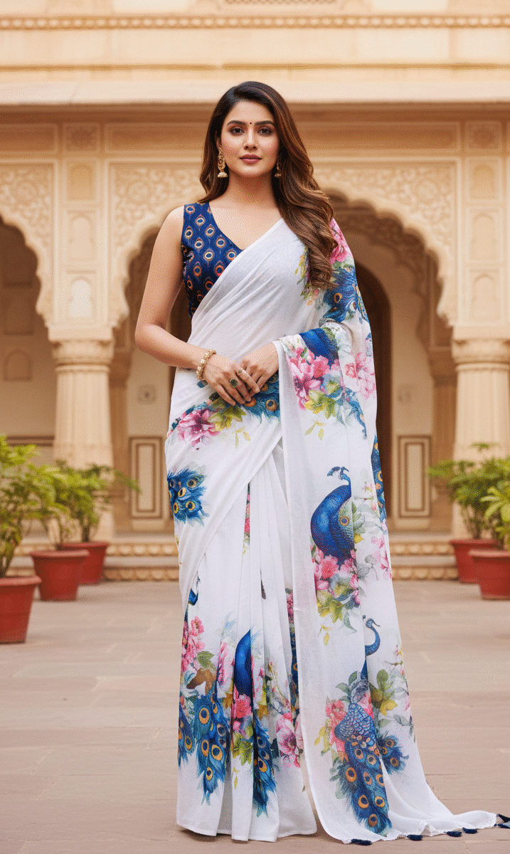 BLOSSOM ELEGANCE LINEN-COTTON SAREE