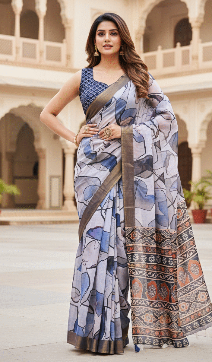 LAVENDER BLOOM HAND PAINTED ORGANZA SAREE