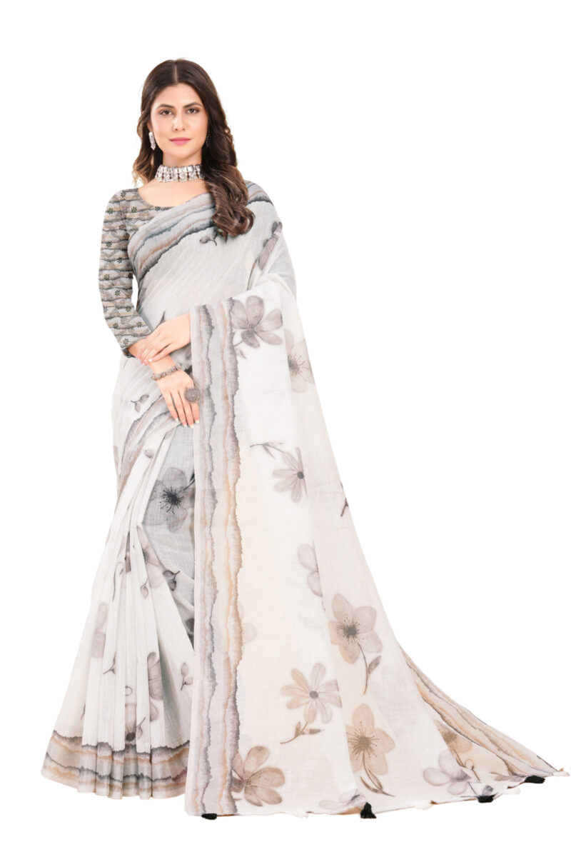 ETHEREAL BLOSSOM LINEN COTTON SAREE