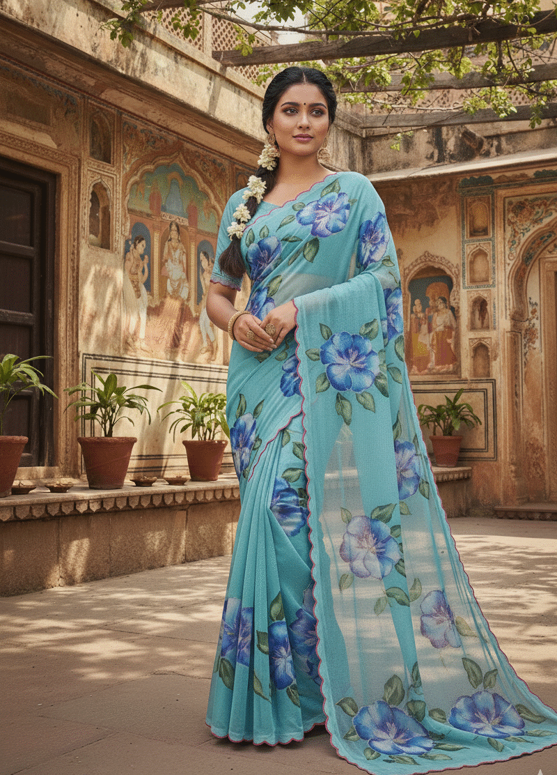 OCEAN BLOOM GEORGETTE SAREE