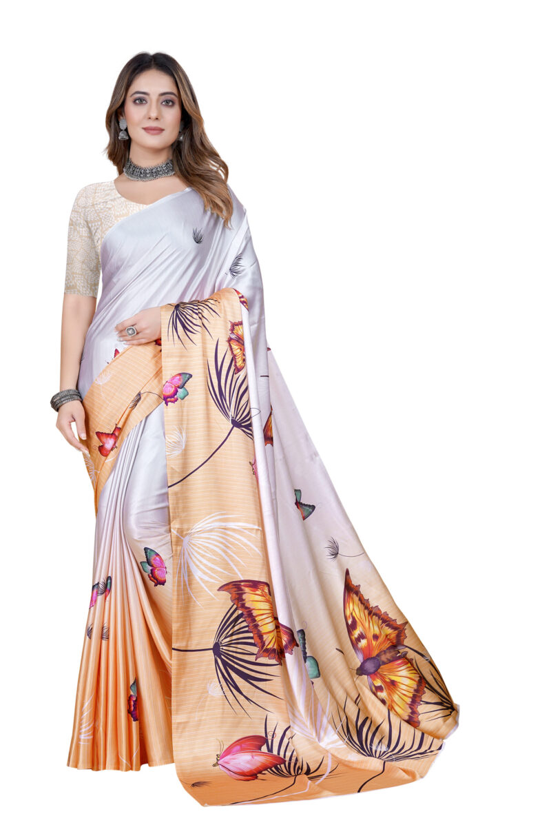 This charming linen-cotton saree features a soft cream base beautifully adorned with pink floral prints and beige leaf patterns throughout the body. The pallu is richly decorated with intricate traditional motifs in shades of pink, maroon, and black, bordered with detailed geometric patterns. A light pink border adds a delicate and graceful finish. The saree comes with a matching maroon-pink printed blouse piece, perfectly balancing the look with elegance and vibrance. It is made from a soft and breathable fabric, the saree offers a smooth flow and elegant drape, ensuring a graceful and comfortable wear, perfect for casual, semi-formal events.